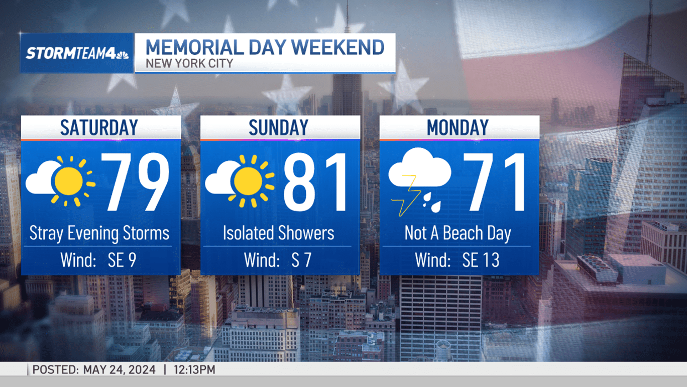 Of the three-day holiday weekend, Monday is the only day that could turn out to be a bummer. Look for clouds, showers and cooler temperatures on Memorial Day. The wind will also be gusty. Think of indoor plans to round out the weekend. If there’s a movie you’ve been wanting to go see, this would be a great day to go.