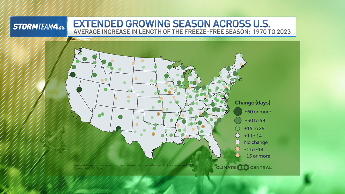 In Atlanta, Georgia, the growing season is averaging 34 days longer. In Reno, Nevada, it’s a whopping 99 days longer!
