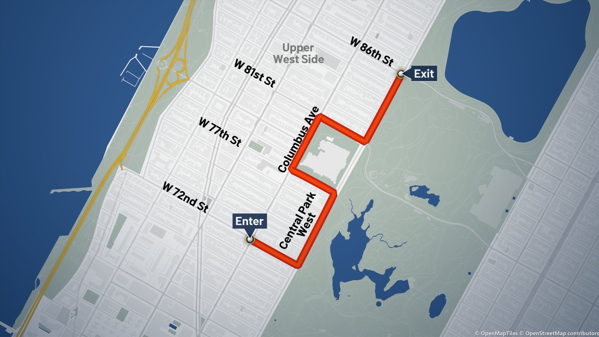 West 72nd Street to West 85th Street will be closed from Central Park West to Columbus Avenue through 12 p.m. on Thursday.